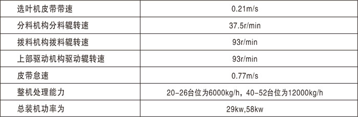 選葉機介紹 ◆選葉機由分料機構(gòu)、連接段、撥料機構(gòu)、布料機構(gòu)、選葉皮帶等組成。 ◆選葉皮帶沿分料機構(gòu)對稱分布,來料經(jīng)過分料機構(gòu)被均分為二,由連接段皮帶輸送至各撥料機構(gòu)適當?shù)卣{(diào)節(jié)撥料機構(gòu),可使來料被均勻地輸送到各選葉皮帶機。